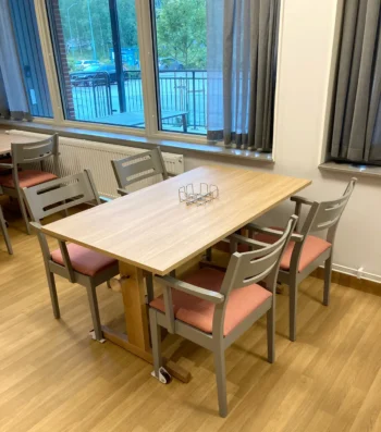 Bo matbord är ett lättplacerat och funktionellt bord med klassisk design, flera storlekar och tålig laminatskiva. Perfekt för äldreboenden och vårdmiljöer.